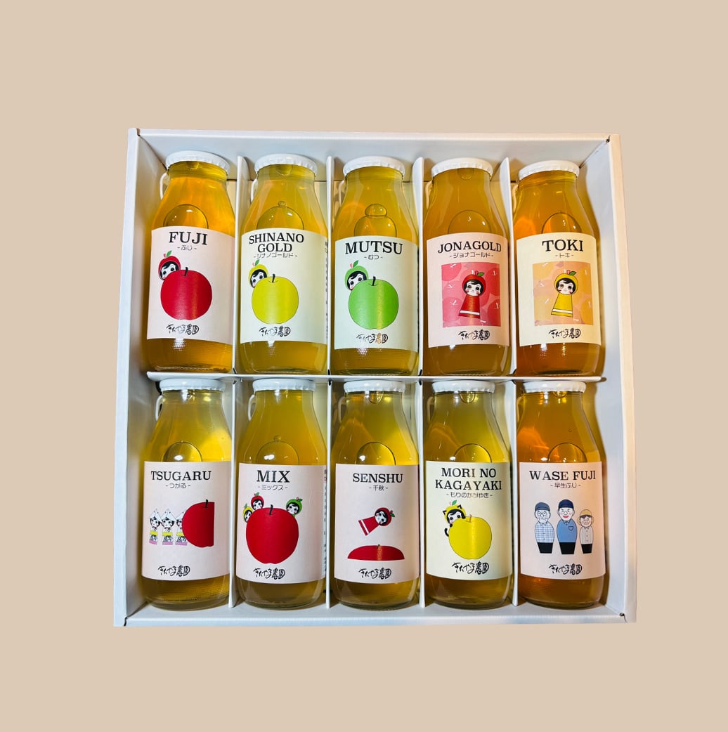 セット内容は、ふじ/シナノゴールド/むつ/ジョナゴールド/トキ/つがる/品種ミックス/千秋/もりのかがやき/早生ふじになります。