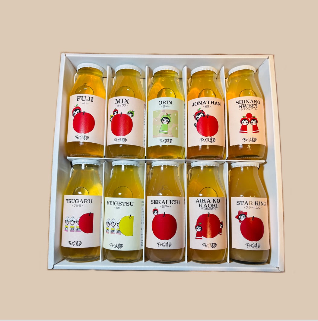 セット内容は、ふじ/品種ミックス/王林/紅玉/シナノスイート/つがる/名月/世界一/あいかの香り/スターキングになります。
